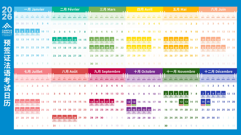 Campus France Chine organise des sessions de tests préconsulaires dans tous ses espaces toute l’année selon le calendrier ci-dessous :