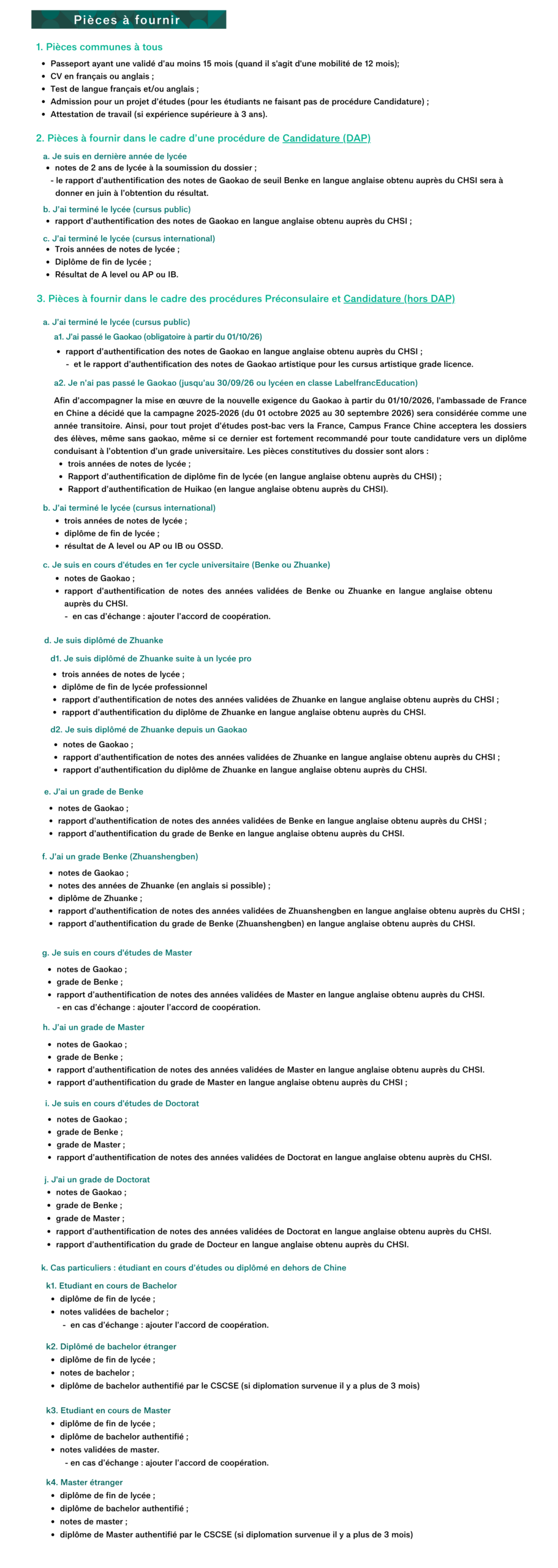 Pièces à fournir